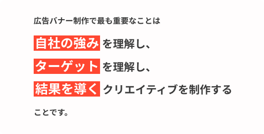 ます。広告の結果を毎日分析し、最短即日で新規バナーの制作、